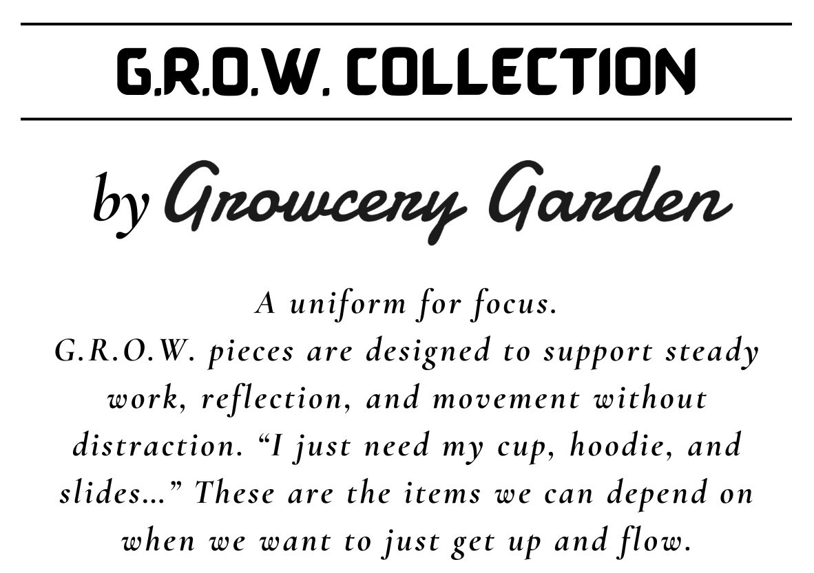 Categories: All Bags Hoodies Magnets Drinkware Slides All | Bags | Hoodies | Magnets | Drinkware | Slides | GROW Travel Mug with a Handle from $25.00 GROW Crop Hoodie $55.00 GROW Women Size Slides $40.00 GROW Hands-Free Utility Crossbody Bag $30.00 GROW Tie-Dye Hoodie $85.00 GROW Glass Magnet from $6.00 GROW Productivity Water Bottle $30.00 GROW Men Sized Slides $40.00